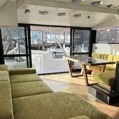 Kokpit je opremljen prostranom garniturom za sjedenje gdje se nalazi stol u kokpitu koji je moguće spustiti tako da se kreira ležaljka u kombinaciji s okolnom klupom, čime se dobivaju dva dodatna ležaja. Odmah do stola je prostor sa spremištem, hladnjakom, električnim grilom i sudoperom s toplom i hladnom vodom kako bi se olakšala priprema delicija…U kokpitu na samoj krmi nalazi se garaža sa spremanje pomoćnog čamca koja kod zatvaranja garaže služi kao sunčalište za odmor u vrućim ljetnim danima.