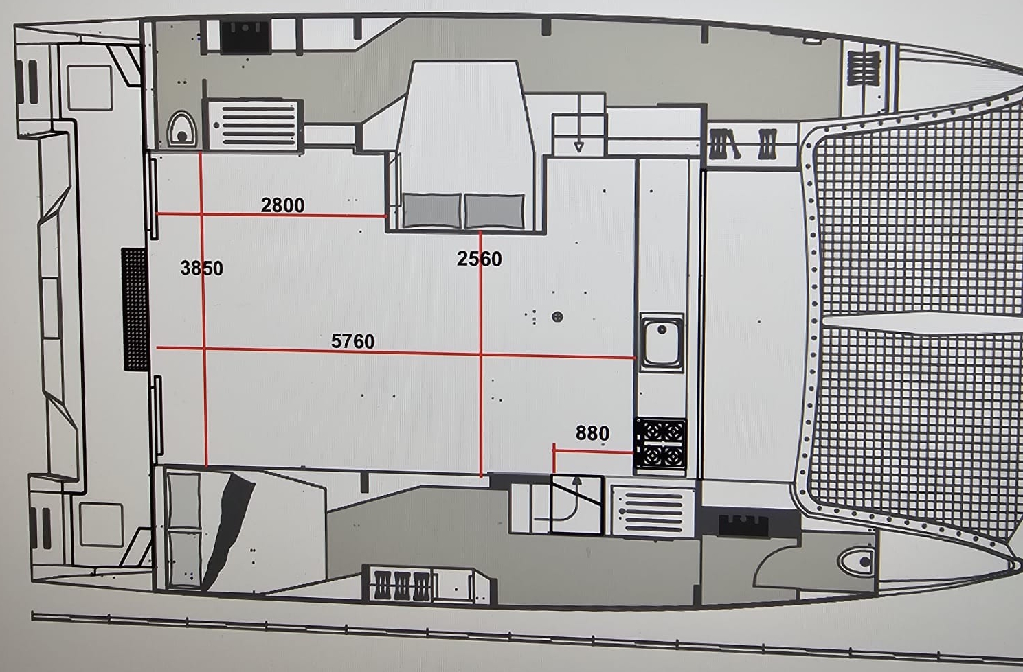 - 3 (pramčana, 2 x krmena) + WC kabina + salon