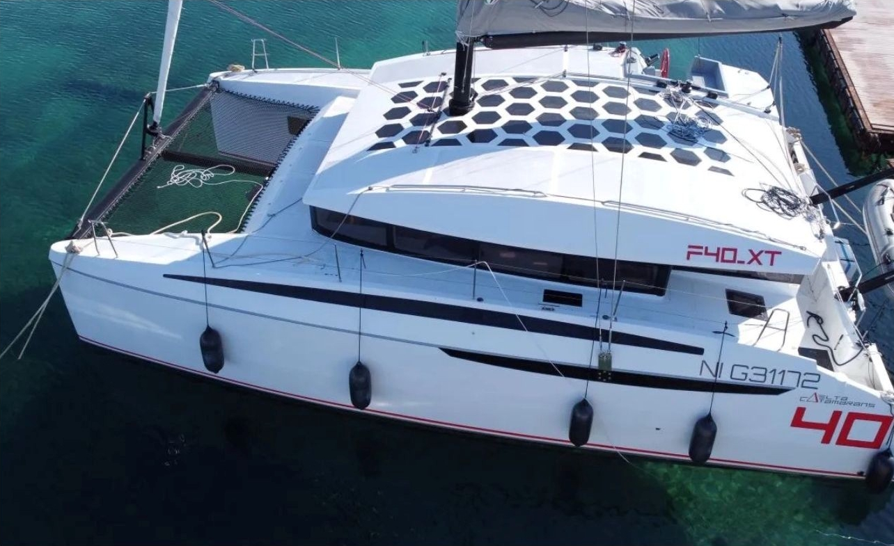 Jasne, esencijalne i odlučne linije karakteriziraju F-40-XT, stvarajući katamaran skulpturalnih i kompaktnih oblika.